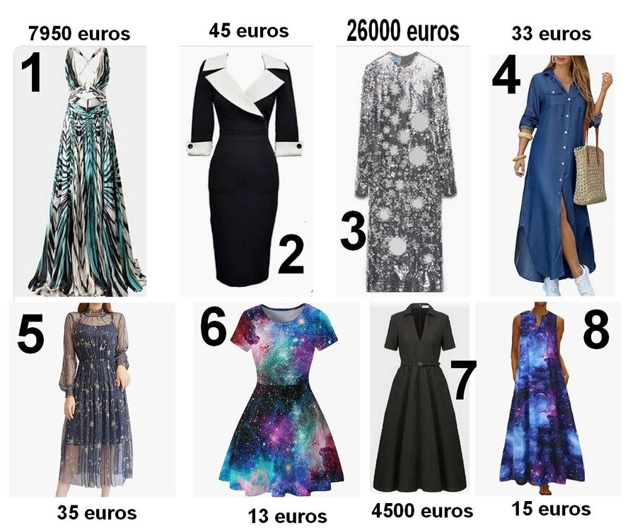 Au-delà des prix des robes affichées pour le sujet, personnellement si j'avais dû en choisir une seule à porter pour moi-même, j'aurais choisi la numéro 5.