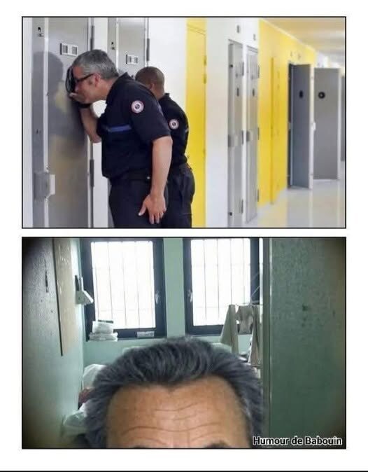 On le savait, Sarkozy serait à l'isolement total : aucun contact avec un autre détenu. Y'a des matons violeurs (etc.) en France ? Plus sérieusement, quelqu'un peut-il m'expliquer pourquoi ces deux policiers hautement spécialisés sont là ?