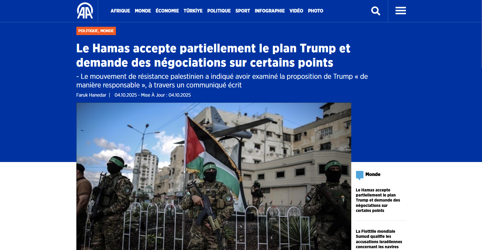 Bon, le  média, c'est  Anadolu  Agency. Complétement  inféodé  au  sieur  Erdogan. Alors  pour  lui, le  Hamas  est  un  mouvement  de  résistance...
