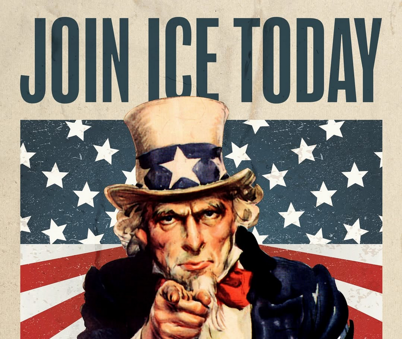 "L'Amérique a besoin de vous". Si ce dessin de l'Oncle Sam, le doigt tendu, était utilisé pendant la Première Guerre mondiale pour recruter des soldats, aujourd'hui, c'est pour des policiers de l'immigration. Cette police a pour objectif de recruter 10.000 "patriotes" pour "se débarrasser" de millions de clandestins..."