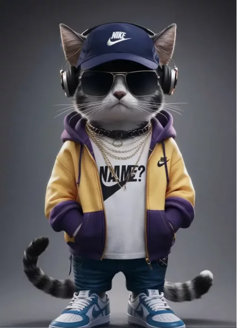 • et un chat en combi spatiale qui fait du skateboard sur un arc-en-ciel cosmique, orchestrant la plus folle chorégraphie de l’univers.
