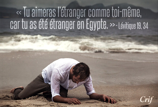 Tu ne vexeras point l’ étranger, car vous connaissez et vous savez ce qu’est le cœur d’un étranger, les sentiments éprouvés et ce qu’éprouve l’ étranger, car vous avez été étrangers dans le pays d’ Egypte (Exode 23/9)
