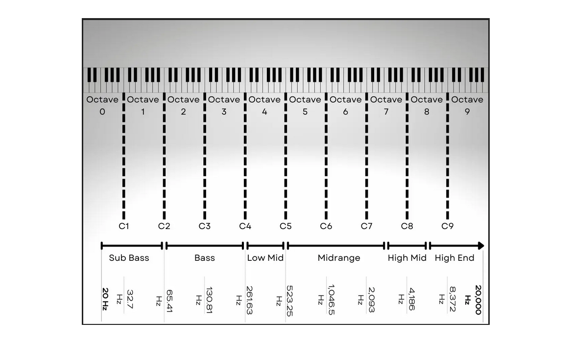 A 20 Hertz ont retrouve bien un Do a l'octave 0, et avec le Si à la 9è Octave, lui ce trouve à 20 000 Hertz.