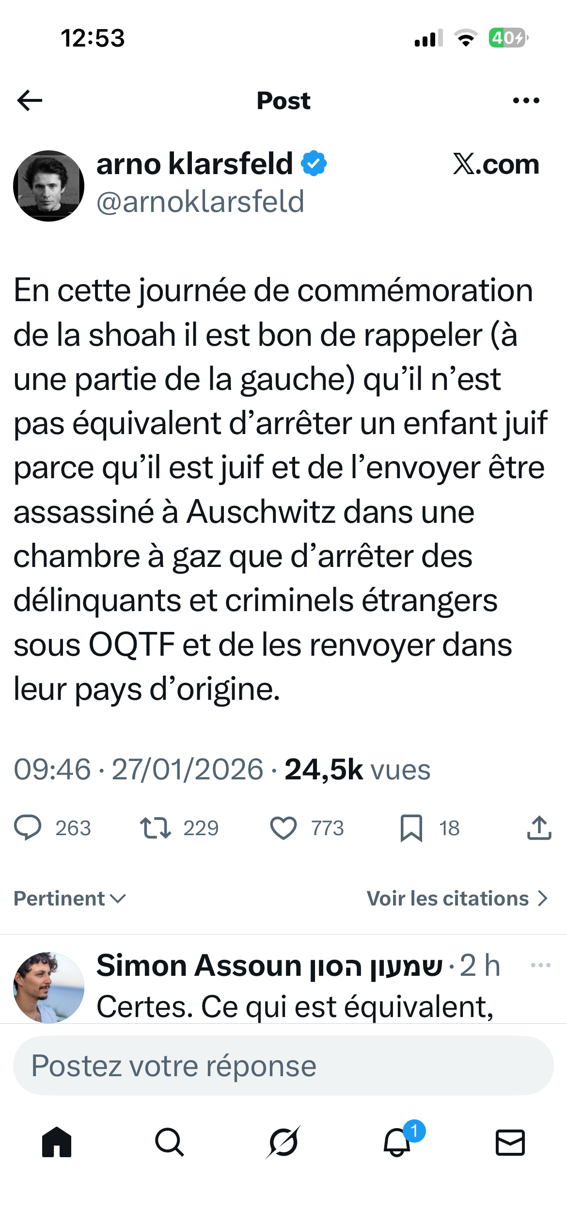 Ben ouais bizarre de la part de A. Klarsfeld. Jai tenté d'écouter son intervention en entier pour comprendre la suite du discours.