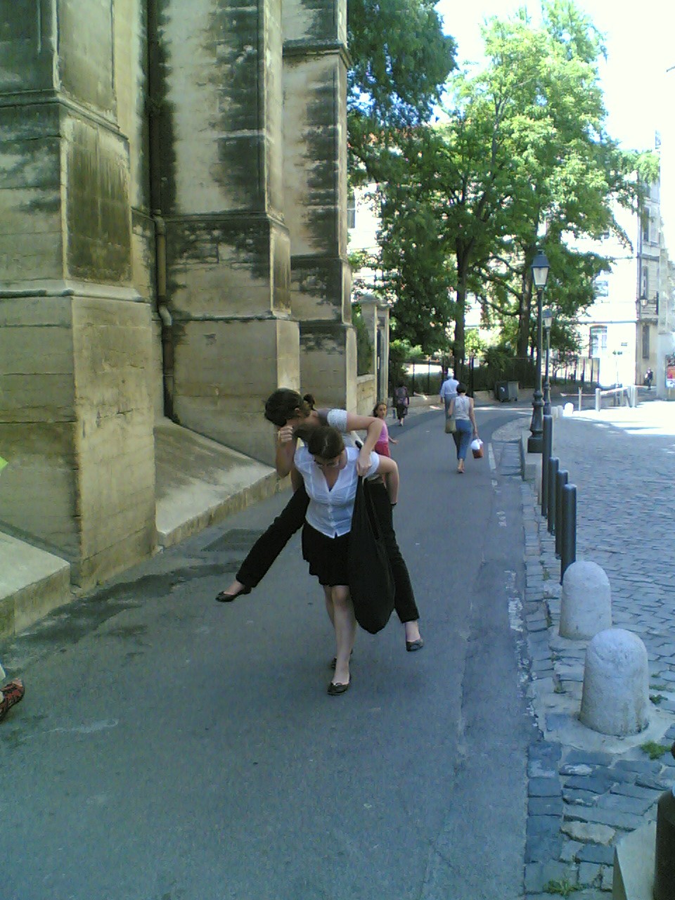 Les premiers à la gare sont bien sûr les mecs (il faut savoir se faire attendre !). Kinwena et moi arrivons ensuite, suivies de Sothis et Magya. Problème, il nous manque Lou Pétchété. On attend une demi-heure, toujours personne. Quand nous finissons par nous faire une raison, myeline appelle pour dire qu'elle va arriver un quart d'heure plus tard (auquel il faut naturellement rajouter le quart d'heure montpelliérain !). Une fois au complet, nous nous décidons à faire découvrir Montpellier à nos amis touristes (comment ça c'est pas nos amis ? Et ton doigt, c'est son cactus ?!).
