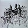 moi je trouve cette batisse mystérieuse, presque infini, vieille et rustre. le fait que les arbres soient fait à la va-vite donne encore plus d'importance au batiment.