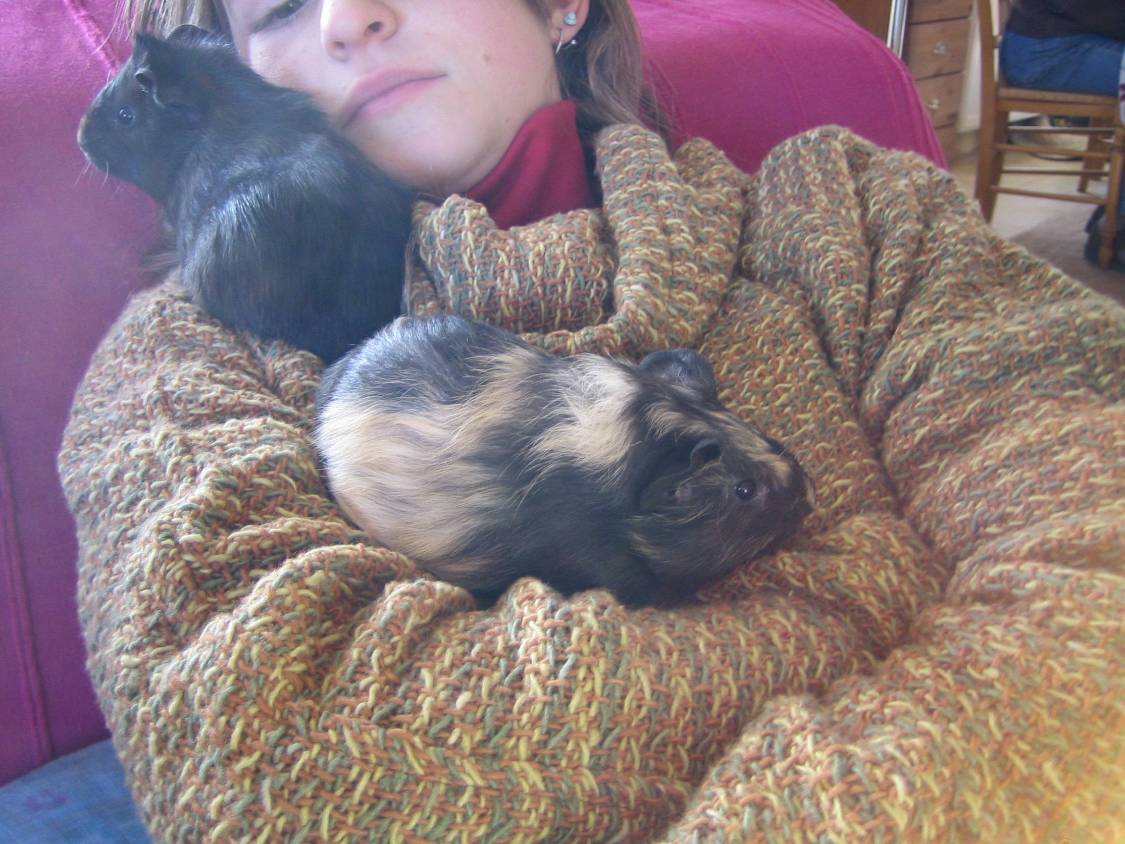 coucou , ma soeur me ramène dimanche 1 cochon d'inde de chez sa belle mère qui habite dans le sud de la france ; elle vient de m'envoyer une photo et j'ai le choix entre Siméon (le bi-colore) et georges (le noir avec une crète).........................................j'étais parti sur le choix de Siméon , mais j'aime bien p'tite frimouse de Georges aussi :snif: . et hors de question d'avoir 2 cochons en meme temps :snif: