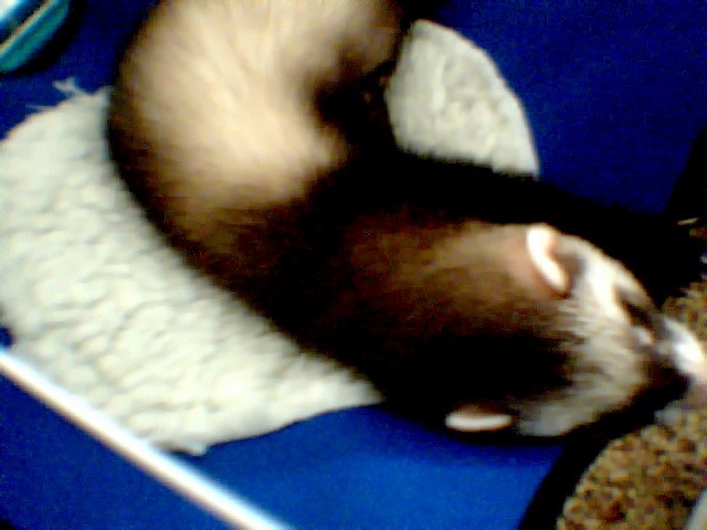 Les photos sont pas terribles mais voila la béte!!FURAX le furet furieux!c'est un bébé il a 3 mois!quand je l'ai acheté il etait vraiment furieux!il mordait!!!et un furet ca mord fort!par contre j'ai trouvé une super solution pour lui couper l'envie de mordre!ca s'appelles le DEEPTHROAT!dés qu'il mord il faut lui enfoncer le doigt mordu au fond de la gorge2 ou 3 secondes!!pour moi au bout d'une journée il ne mordait plus fort!!!aprés ca mordille un peu mais c'est pour jouer et ca fait pas mal!si tu veux me laisser un message si tu as des questions tu peux!a bientot peut etre!voilou!! :snif::snif:;):o