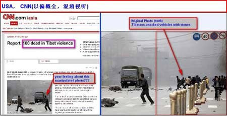 Pourquoi choisir ce moment, trois mois avant l'ouverture des JO à Pékin ? Le gouvernement chinois est en train de préparer les JO. Pour quelle raison ils tueraient le peuple tibétain en ce moment, comme les informations que vous avez vu à la télévision ? REFLECHISSEZ UN PEU SVP ! Le gouvernement chinois a payé 1500 milliard d'euros pour construire les stades, les hôtels et les autres accessoires du projet pour ces JO. Où est l'erreur ? Regardez ce qui suit : http://209.85.135.104/search?q=cache:-qg7Z...;cd=1&gl=fr Ce site ANTI CNN montre les scandales de vos médias. Je vis en France, j'aime la France, la plupart des français sont très gentils. Mais je voulais vous dire « arrêtez de juger quelconque question avec les yeux fermés » « ouvrez les yeux, regardez bien ce qu'il se passe dans ce monde » « qui sont les terroristes, qui sont les gens les plus dangereux »