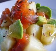 Saumon marinée à l'avocat/pomme de terre