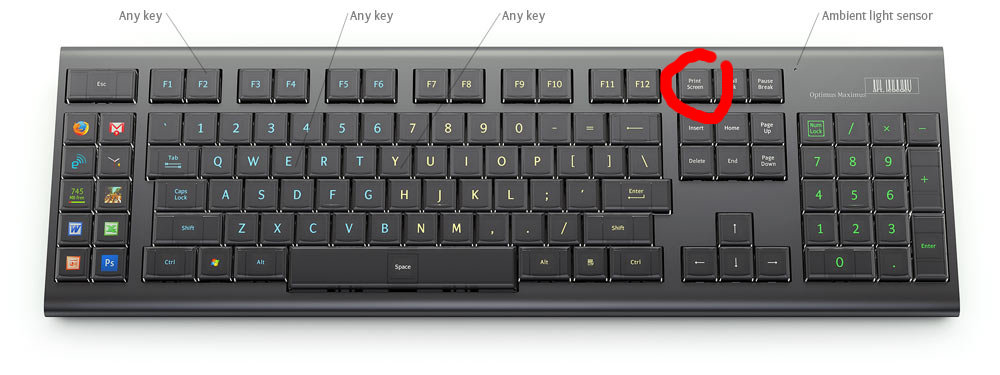ps: j'ai rajouté la photo d'un clavier, pour te montrer comment on fait une capture d'écran. J'ai entouré la touche en question, c'est print screen, ou impr ecran syst, ça dépend, en tout cas, tu peux pas la louper. quand tu appuies sur ce touches, tu "prends en photos" (donc, on dit que tu captures) ton écran. Ensuite, tu ouvres "Paint", et tu fais édition->coller (ou ctrl V) et, tu enregistres ton truc.