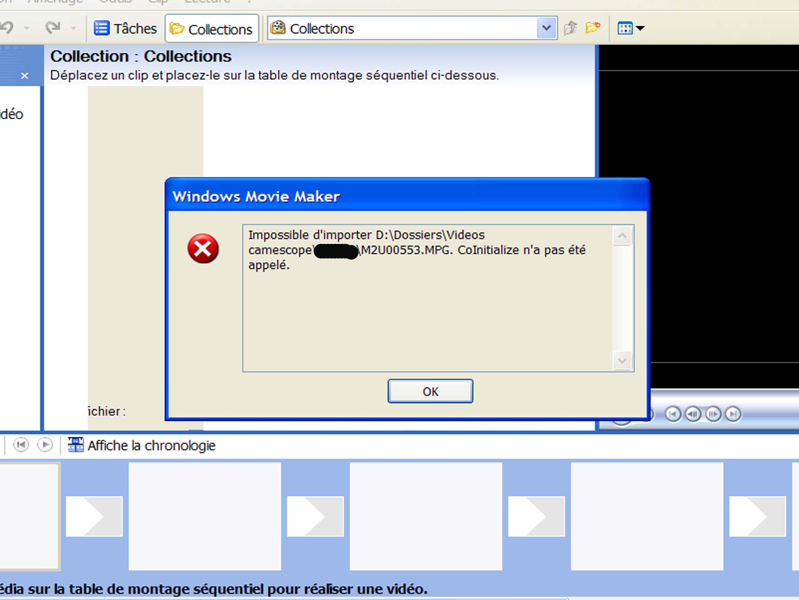 Voila j'utilise Movie Maker 2.0 et je n'arrive pas à importer des vidéos, lorsque je les importes ça m'écrit Co Initialize n'a pas été appelé. J'aurais voulu savoir comment régler ce problème et pouvoir faire des montages avec des videos.