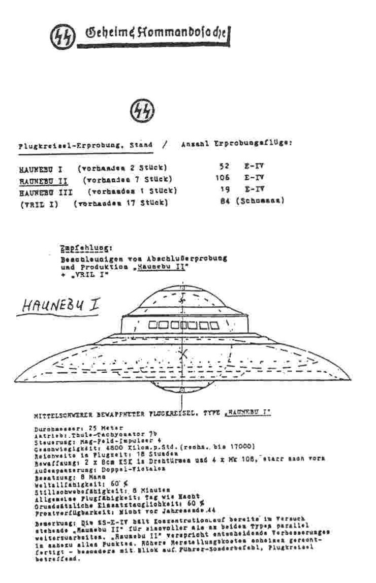 Apparement les Russes en auraient abbatuent un au dessus de leur territoire et un autre se serait abbimé en antartique. De plus des batiment de forme inutile pour l'époque sont présent sur le sol Allemand. Comme des sortes de support ainsi que des atiments de forme Oblongue, qui ne pourraient pas servir à des avions.