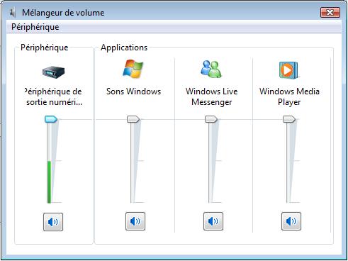 Bonjour, il y a quelques jours mon PC s'arreté tout seul au bout d'un certains temps plutot court (environ 3min) après l'avoir debranché une nuit il s'est remi a fonctionner. Cela dit mon melangeur de volume BEUG! :snif: en effet le péripherique numérique reconnait le sons mais les autres comme "sons windows" ou meme "windows media player" ne le reconnaissent point. Le PC ne reconnait pas d'erreur :snif: c'est vraiment embêtant car le son est une nécéssité pour mes activitées info' alors si vous pouviez m'indiquer un conseil j'en serai ravi :snif::snif: ... merci d'avance et bonne journée :snif: .