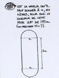 calculer la valeur qu'il faut donner à x, en mètres, pour que la longueur de cette piste soit de 175m ( on prendra "pi" =3 )