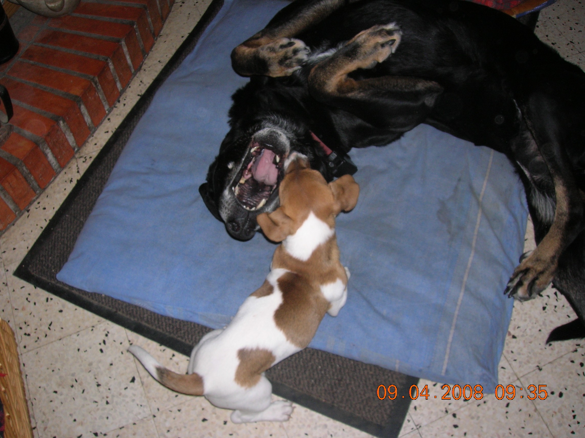 et une jack russel de 10 mois ; qui est a la maison a l'age de trois mois -