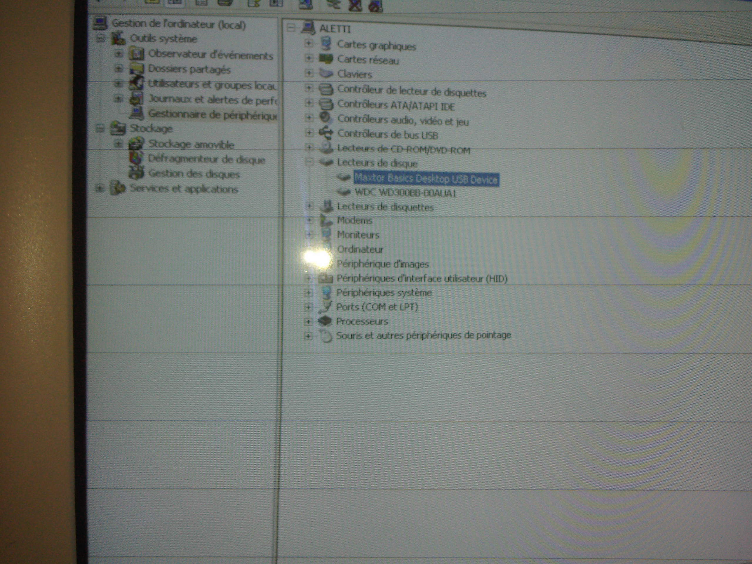 Bien il est reconnu par le gestionnaire, maintenant je veux une copie-écran (enfin... une photo) de la section GESTION DES DISQUES (4 lignes en dessous)