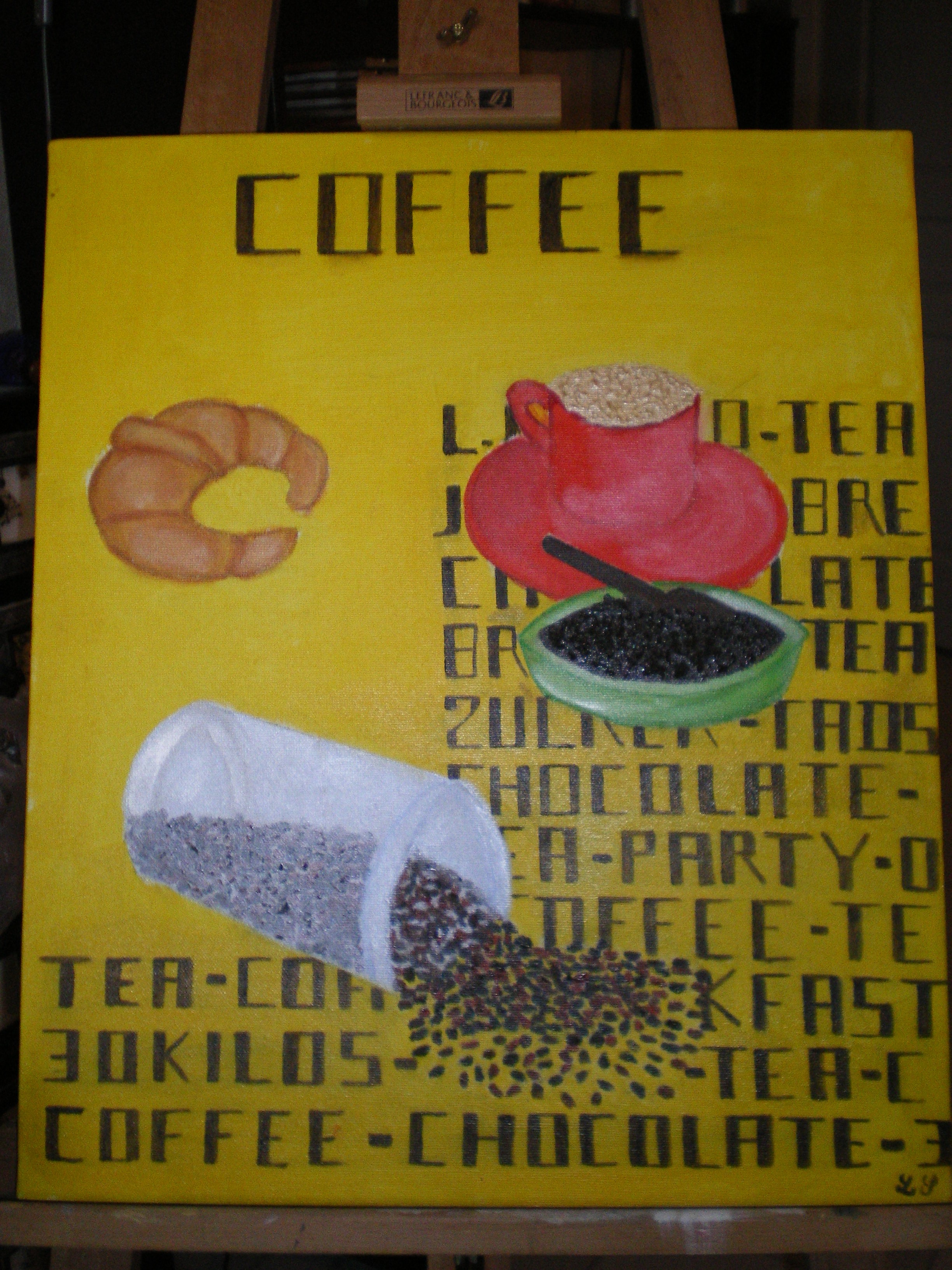 Celle-ci s'intitule Coffee Breakfast, peinture à l'huile, 2008.