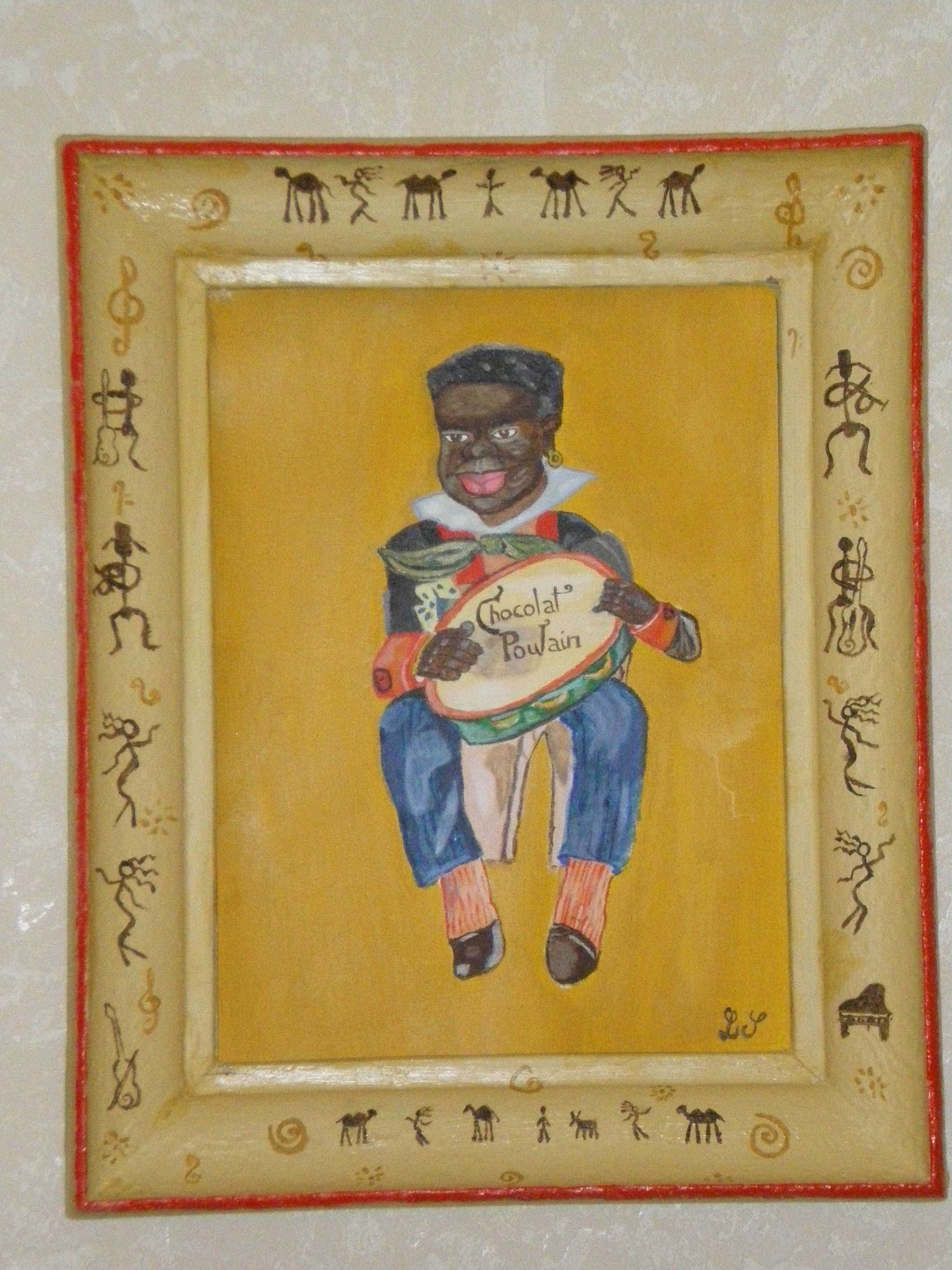 Et une dernière pour aujourd'hui, ma préférée, "Le P'tit Black", c'est une reproduction que j'ai faite à partir d'une publicité ancienne de chocolat poulain. J'ai également créé et peint le cadre. Toujours à l'huile.