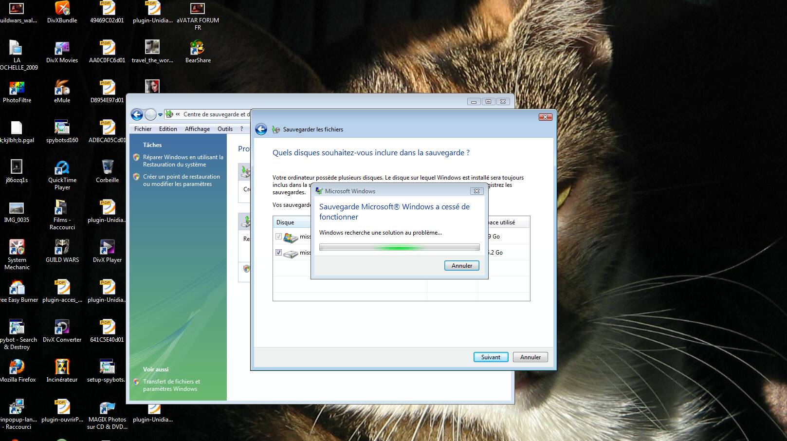 Impossible de faire une sauvegarde de mes disques durs, via l'utilitaire windows. Ce dernier plante a chaque fois.