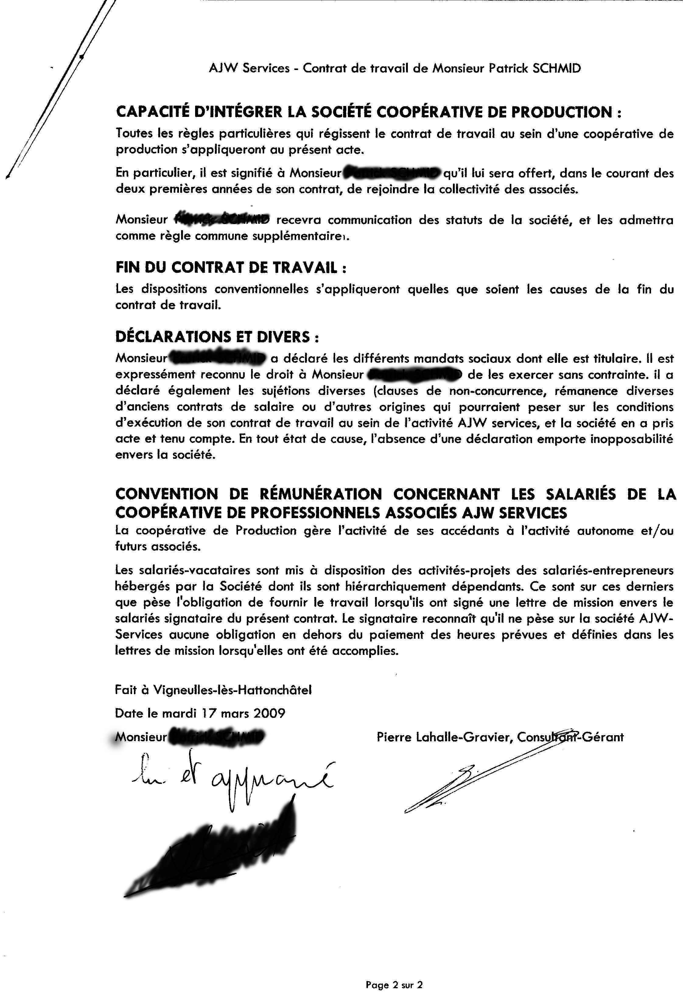 j'envoie Contrat de travail et Réponse a la lettre AR.