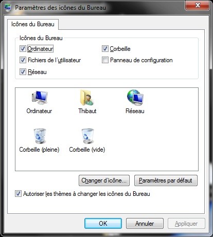 2. clic sur "Changer les icônes du bureau" dans le panneau de gauche, ça ouvre ça: