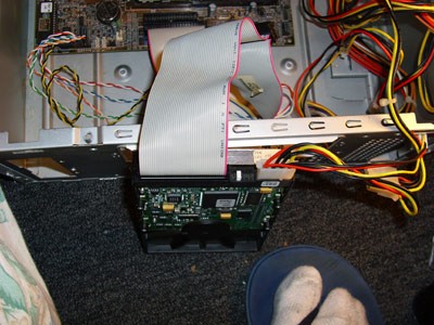 il faut aussi raccorder ton disque dur à l'alimentation, il doit y avoir des petits connecteurs en trapèze qui pendouillent, ou tu reprends celui du lecteur cd temporairement