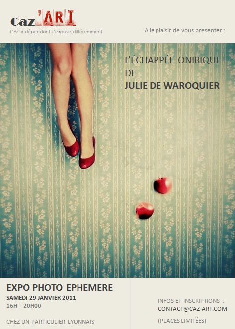 Une vingtaine de photos seront exposées au domicile d'une particulière lyonnaise, dont la sympathie et l'enthousiasme nous permettent de vous proposer un modèle d'exposition complètement atypique.