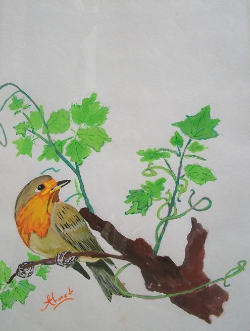 très joli ton dessin moi je le trouve bien fait en plus un petit rouge-gorge Félicitation!!!