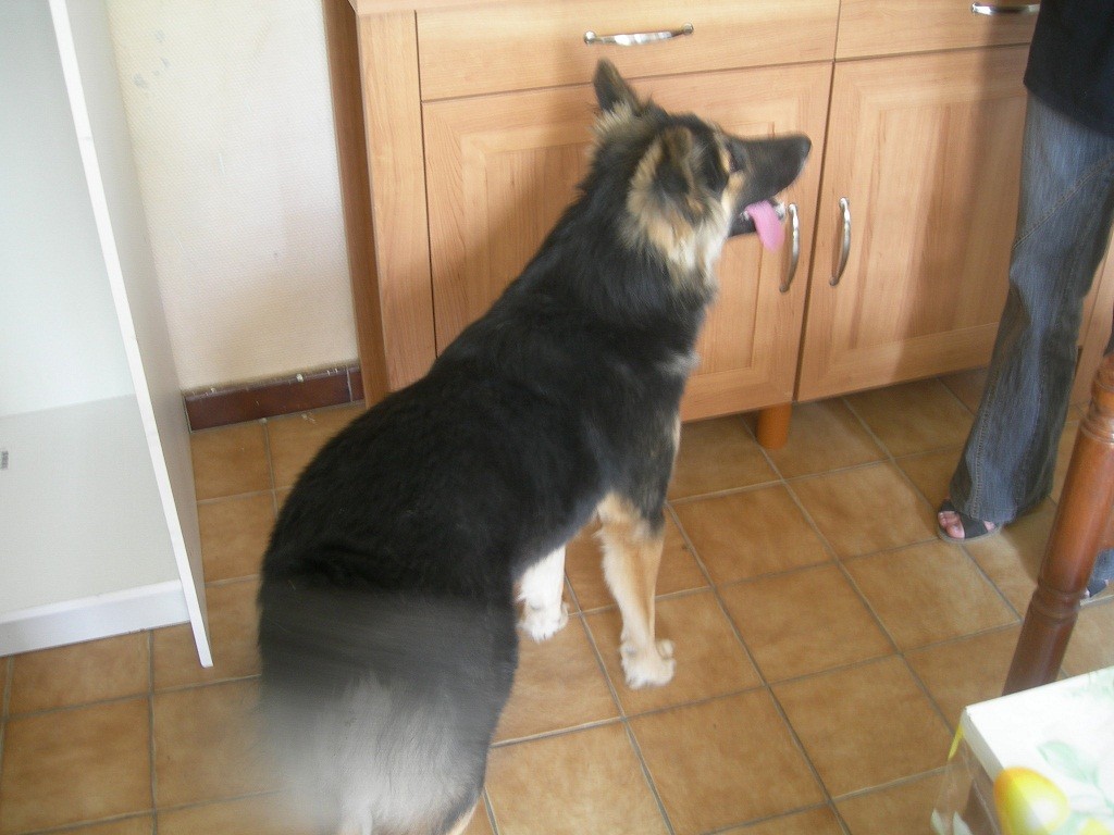 Malick quand je suis l'a chercher a angers elle était maigre, depuis elle me quitte plus, elle est parfois un peu trop collante, je peux pas faire un pas sans qu'elle soit derriére moi combien fois j'ai falli tomber a cause d'elle, :smile2: Eros lui est plus indépant, autant Malick aime rester a la maison Eros lui méme si il pleut il est dehors, il faut que je rale pour le faire rentrer, j'ai condané une piéce pour eux, bon cette piéce me sert aussi de sellier