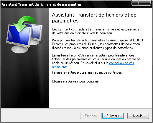 normalement chez Windows tu as sa / dans tout les programme / accessoire / outil système / assistant transfert de fichier et de paramètre .