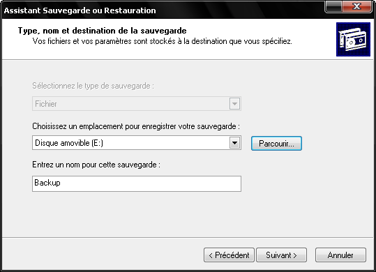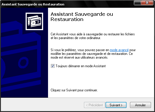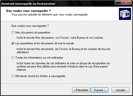 tu as aussi / tout les programme / accessoire / outils système / utilitaire de sauvegarde .
