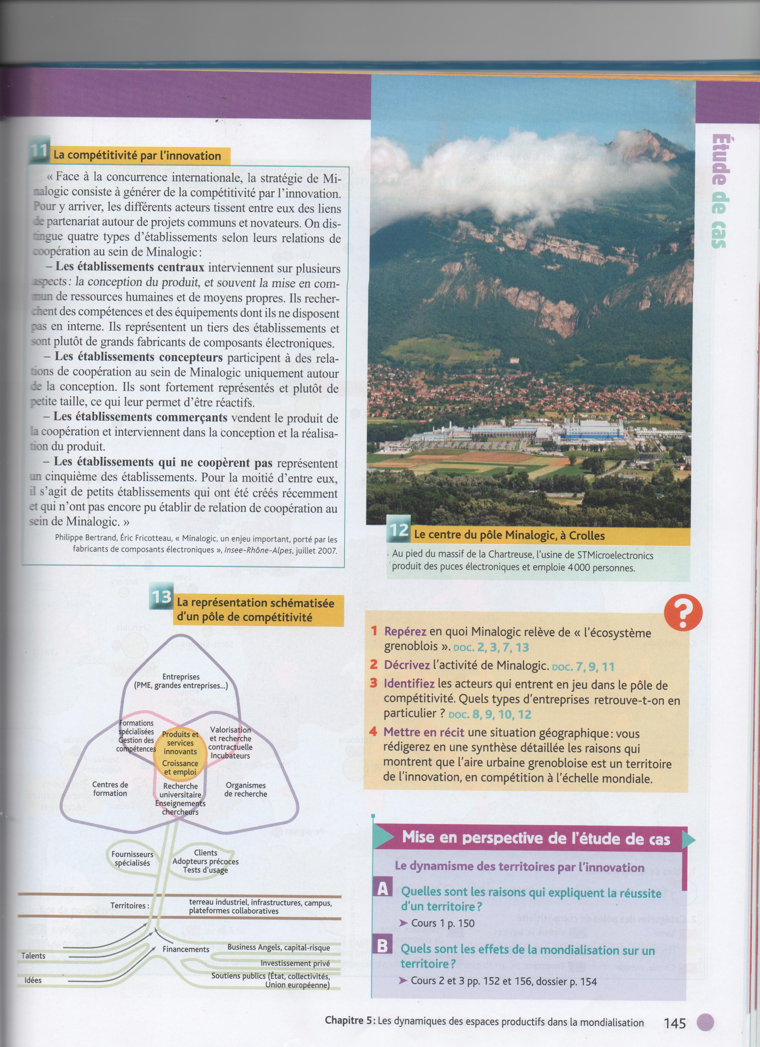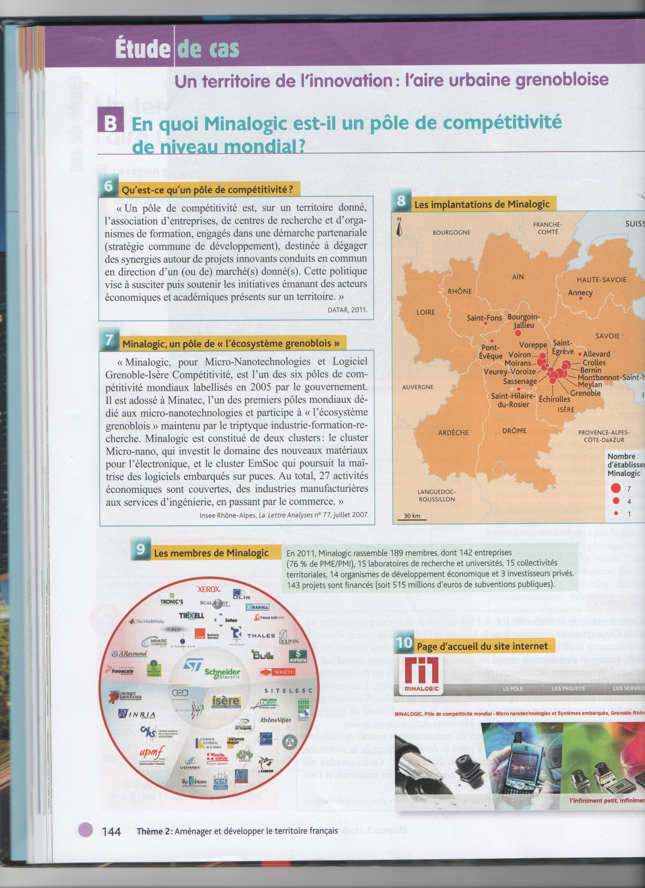 La production : Docs 10 et 7- Situé aucœur d'un des centres mondiaux ; leaders sur les micro-nanotechnologies etl'intelligence logicielle embarquée, le pôle de compétitivité Minalogic estconstitué de 2 clusters : Le cluster Micro-nano (recherche nouveauxmatériaux pour l’électronique) et le cluster EmSoc (logiciels embarqués surpuces)