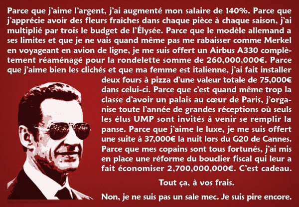 Et vous payez même le kérozène de mon Airbus A-330 , les salaires de mon équipe de campagne ! Chers Français ...
