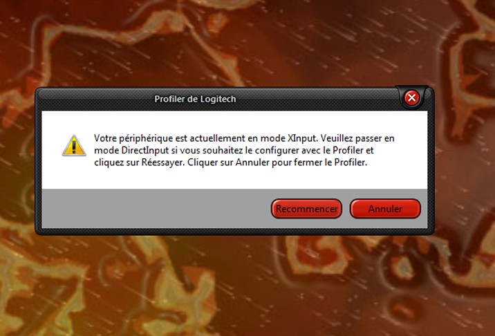 Il me dise que mon périphérique est en mode XInput et que je dois le mettre en mode DirectInput pour pouvoir configurer ma manette Logitech comment faire ça?