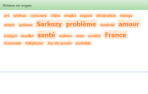 Cet outil est faussé par le fait que beaucoup de sujets ne sont pas "tagués" (mots-clé liés, permettant de faciliter la classification des sujets). Mais oui, il y a certains thèmes qui parlent d'eux-mêmes.