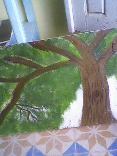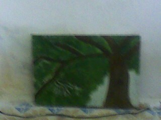 Quand je vois des demonstrations en video je maperçoit que mes pinceaux ne ressemblent pas a ceux utilisé dans la video c'est pour cela mon oeuvre est loin de paraitre realiste , si la camera était plus clair tu verra qu il ya des blémes en feuillage et aussi sur les nerveures des branchages et celles du tronc....Par ailleur vous pouvez rigoler sur moi ou pas lool je ne sais pas c'est quoi la toile est ce c'est du tissu du drap blanc ou quoi ? jen ai jamais vu franchement.