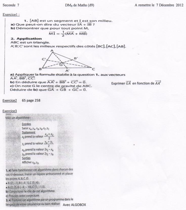 Ben, tu devrais avoir un cours sur les vecteurs, quelque part. Pour faire le 1)a) ce serait une bonne idée de commencer par là...