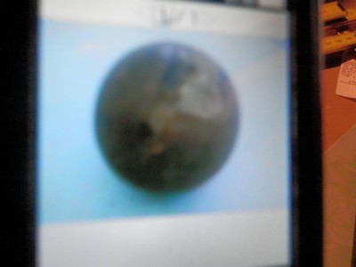 Il s'agit d'une boule , couleur vert foncé , taille d'une balle de ping pong bien ronde , sans odeur, intérieur comme un genre de mousse.