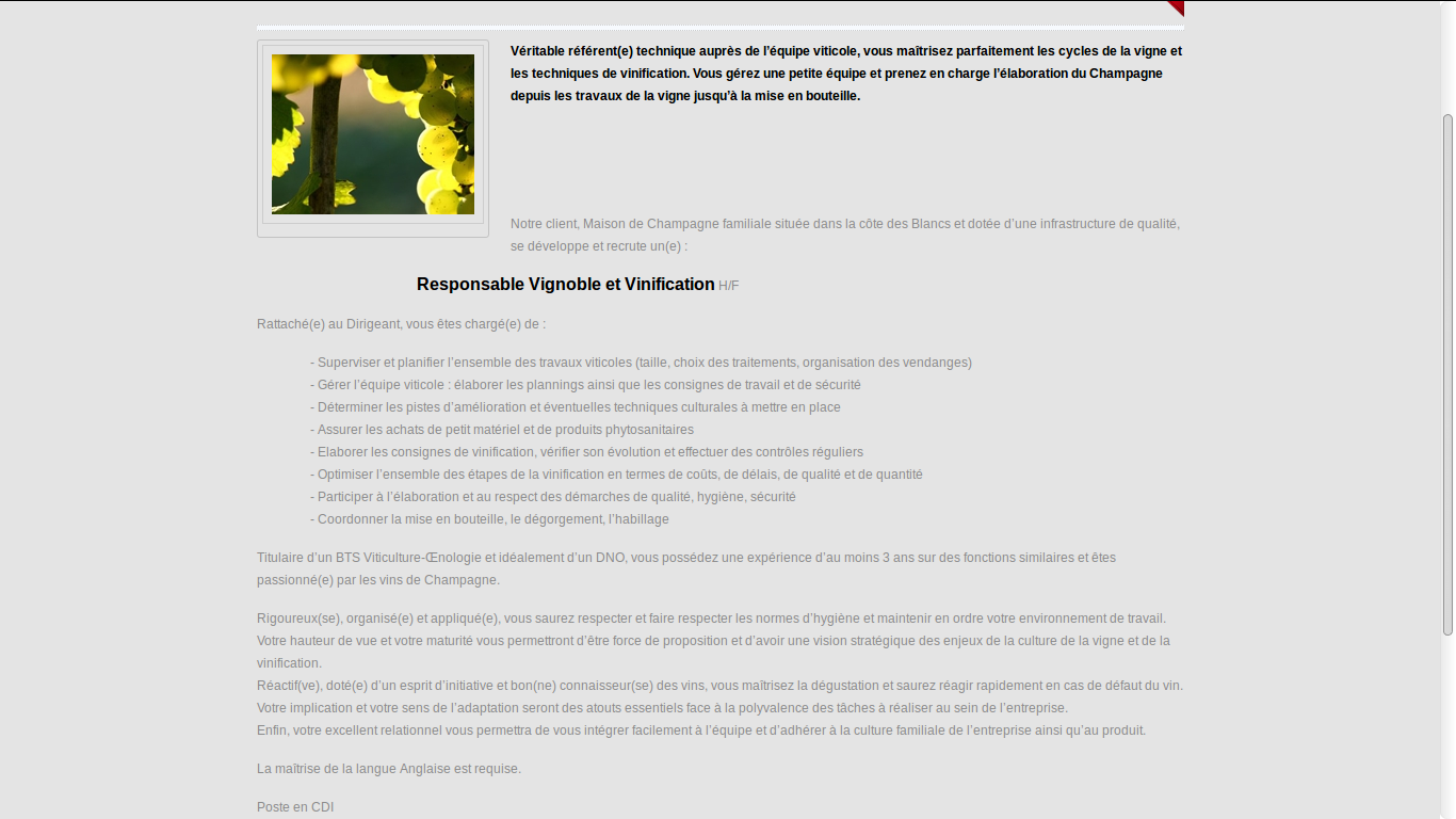 Je travaille dans le domaine viticole et je souhaite postuler à une offre d'emploi qui m'intéresse vraiment.