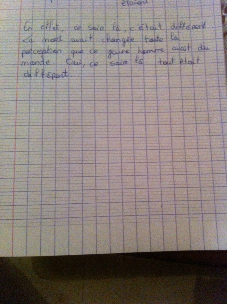 Merci de vos conseils. Voici un texte un peu plus long que j'ai écris il y a peu, merci encore de vos critiques, et puis excusez les ratures ce texte était un brouillons.post-184528-1409173107,9632_thumb.jpgpost-184528-1409173630,9885_thumb.jpgpost-184528-1409173787,239_thumb.jpg