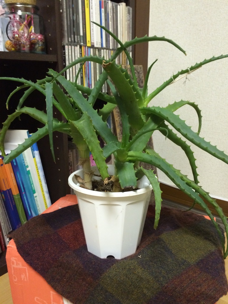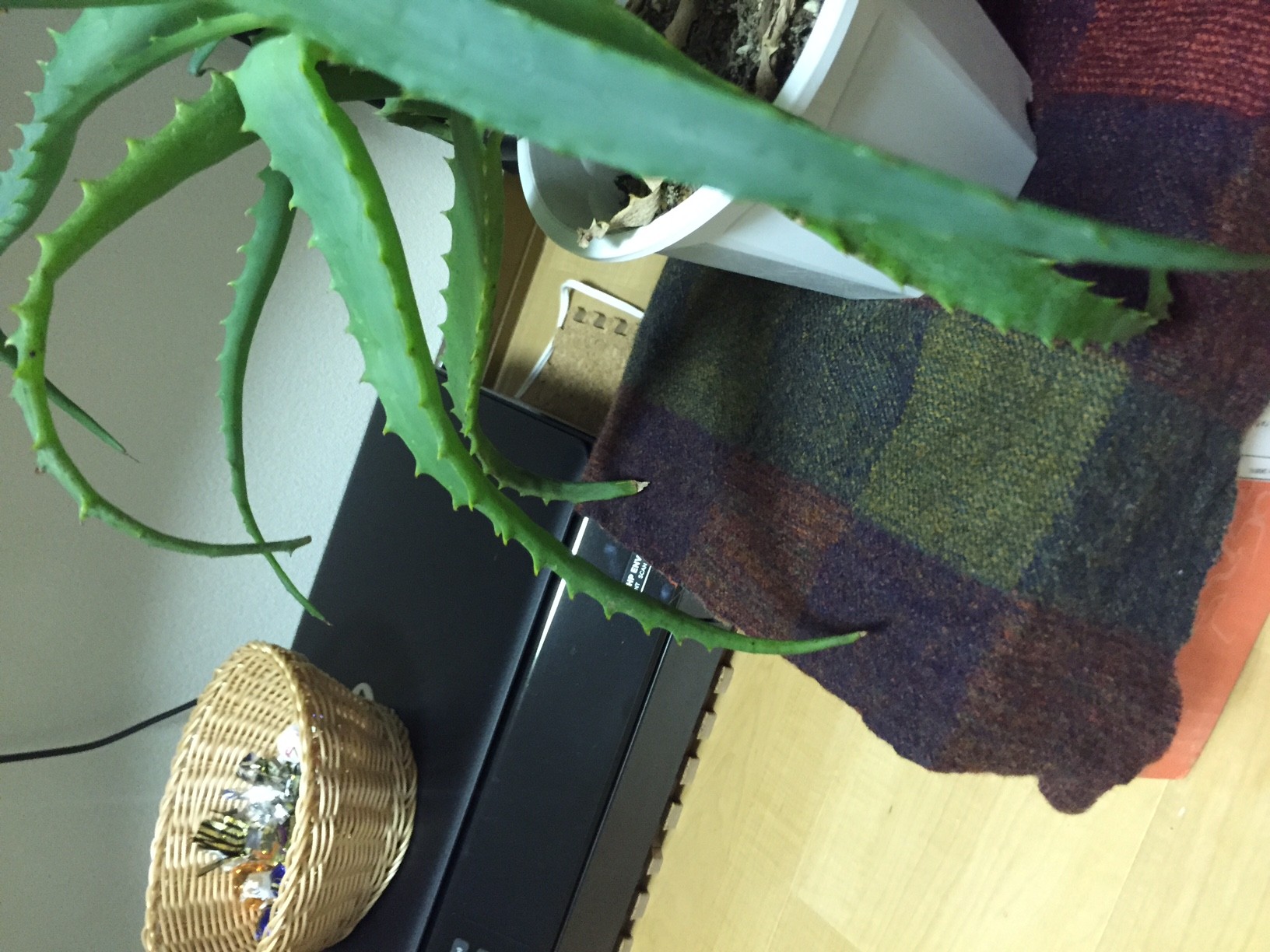 Je me permets de poster ce message car je suis un peu désespérée: j'ai acheté il y a maintenant deux semaines une aloe vera dans une jardinerie près de chez moi (en vérité il y a trois pieds d'aloe dans ce pot). Les aloe qu'ils proposaient étaient toutes en mauvaise état: feuilles cassées à plusieurs endroits. Je me suis dit que je voudrais bien donner une seconde vie à l'une d'entre elles et j'en ai donc choisi une.