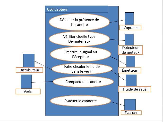 Bonjour j'ai bien avancé dans mon projet mais il y a un problème il faut que quand on place la connaître dans la machine la machine compacte que les canettes et pas autre chose évidemment quand on va mettre un objet ou bien si on met sa main elle va être compacter et du coup j'aurais besoin d'aide pour avancer pour que la machine compote que les canettes et non d'autres objets et je tiens à préciser que dans mon dans mon match et j'ai utilisé un capteurs optiques