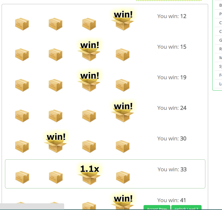 Voici une autre image, celle ci est sur un jeu avec de l'argent réel, ça date d'hier, j'ai joué avec cette loi et regarder ça, une chance sur 4 de tombé sur la bonne boite ! post-189119-0-27610800-1429709330_thumb.png
