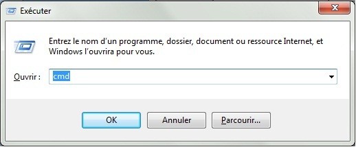 Pour savoir l'adresse @IP je clic sur la touche Windows et R en parallèle je vois une boite de dialogue puis je tape cmd après je vois une fenêtre noir je tape IPCONFIG