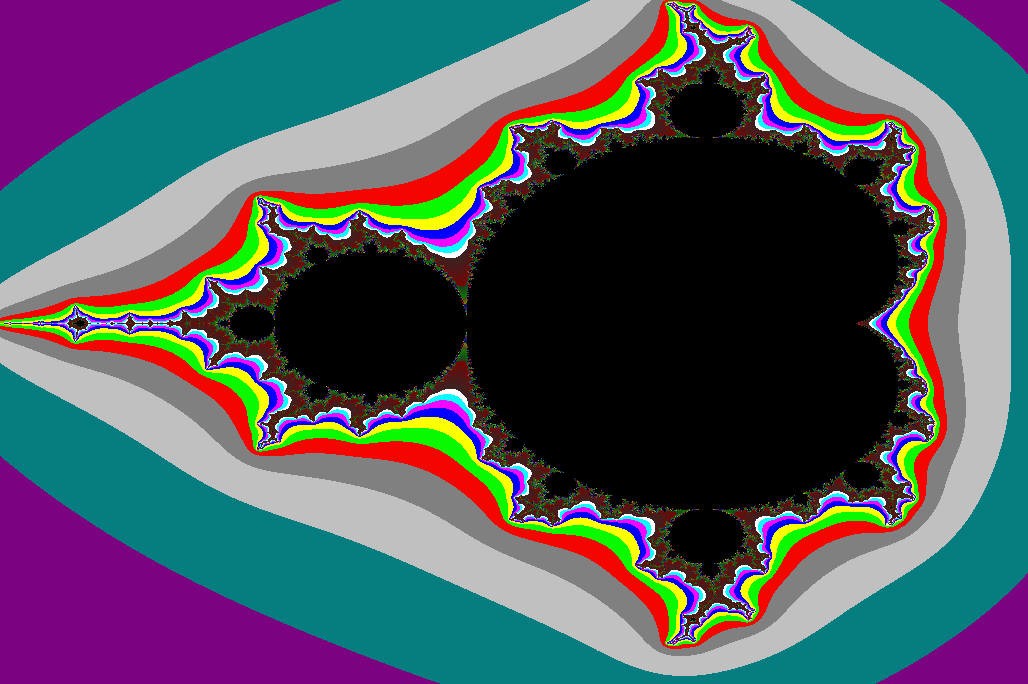 Voici l'ensemble de Mandelbrot que j'ai programmé sur mon ordinateur à l'aide d'un langage que j'ai inventé il y a une trentaine d'années et particulièrement adapté aux ordinateurs personnels.