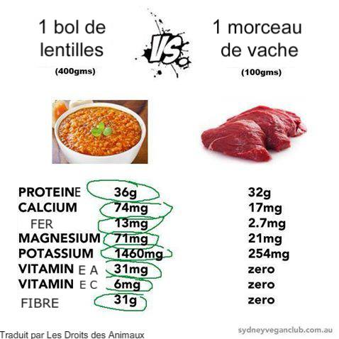 Ouais faut quand même comparer 400 grammes de lentilles avec 100 grammes de viandes pour avoir un effet presque comparable.
