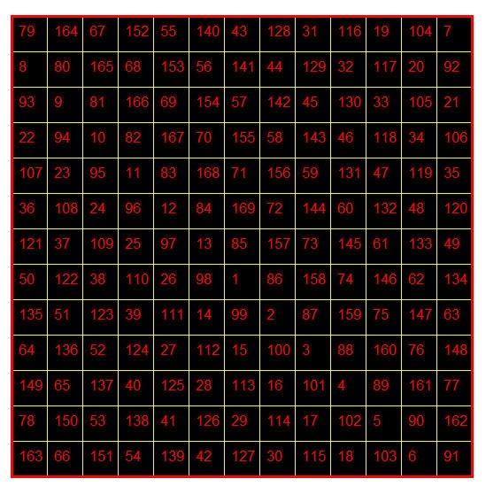 Ha mais bien sûr. Cela est évident. La méthode brutale n'a rien qui puisse la défendre. Elle est pourtant très efficace en temps d'exécution. Surtout si on l'aide un peu. Par exemple en plaçant d'emblée les deux diagonales dont les nombres sont connus. Mais il faut tout de même raison garder. Pas question de l'envisager avec un carré de 1000x1000. Ouf.