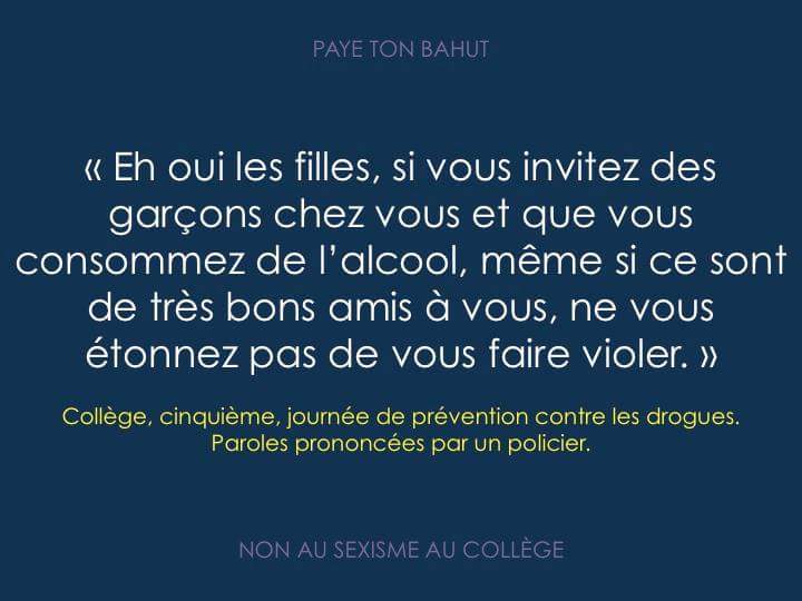 Ca fait plusieurs semaines que le phénomène s'accélère, je voulais simplement avoir l'avis et les reactions sur ces tumblr qui fleurissent en ce moment, faisant appel à des témoignages pour dénoncer les situations de harcèlement sexistes dans divers milieu (travail, école, fac, milieu juridique, politique, médical...je vous conseille la page Facebook "paye ton bahut" qui dénonce des faits dès le collège).