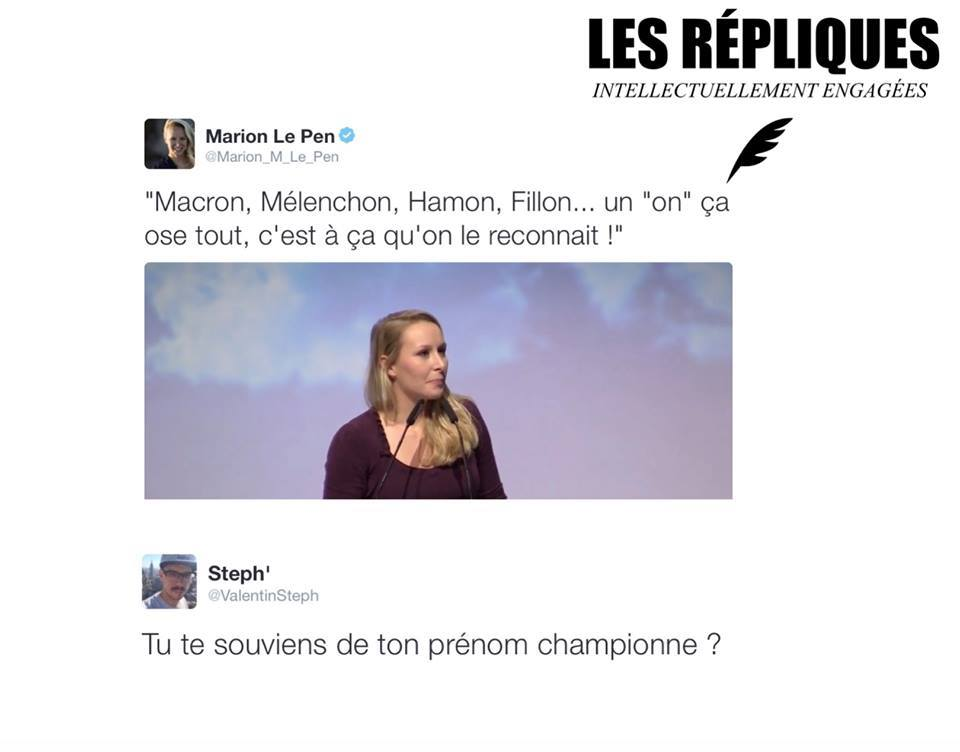 Marion Maréchal est une petite écervelé sans idée personnelle que le perroquet du tonton qui radote dans son château de Montretoutl à Sèvres.